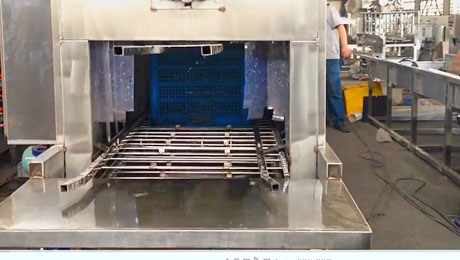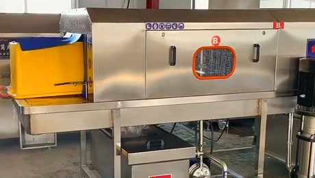洗筐機周轉筐洗筐機通俗的叫法就是洗筐機,也有叫周轉箱清洗機的,該設備是一種代替人工的自動周轉筐清洗設備。它的工作過程大幅度降低了人工的成本,一般是長方形的機器,需要待洗的筐從入口進入從出口出來的時候已經變為清洗完畢的物品筐了。