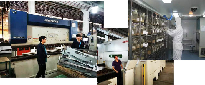 -采用進口大型全自動鈑金設備激光不銹鋼切割機、數控沖床設備、數控折彎機等加工設備;機器設備價值700萬元。