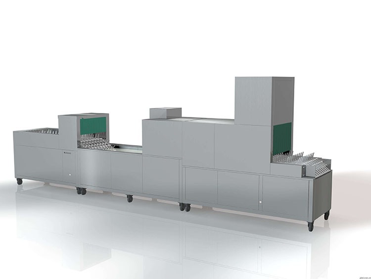 餐廳洗碗機:洗碗機配上高效配方的專用洗刷劑,在主洗、漂洗的水流機械作用下發(fā)揮作用,可達(dá)到手洗所無法達(dá)到的清洗作用。強力高溫噴淋完全洗凈頑固油污,豬牛等動物性油脂用高溫洗刷也能夠充分洗凈(手洗時水溫只能是30~40℃,而豬牛等動物性油脂的溶解溫度是40℃~50℃)。環(huán)繞淋噴,各個旮旯都能夠沖洗到。